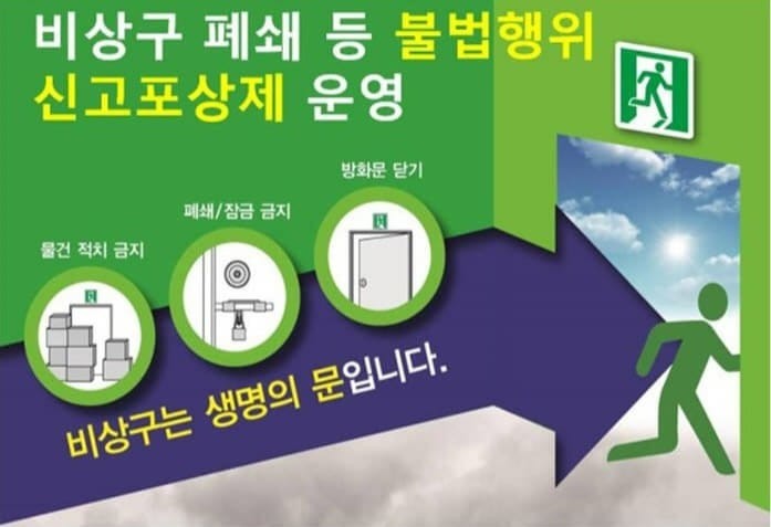 | ▲ 비상문 폐쇄 등 불법행위 신고포상제사진 |