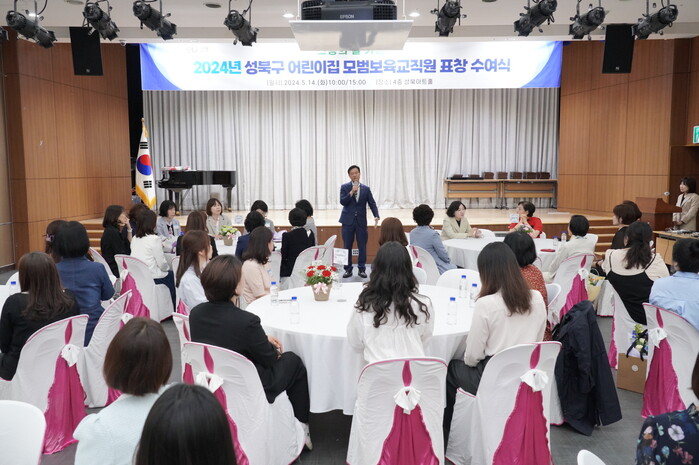 [시민일보 = 변은선 기자] 서울 성북구(구청장 이승로)가 최근 스승의 날을 맞아 어려운 보육환경 속에서 영유아 보육을 위해 헌신하고 있는 어린이집 모범보육교직원 표창 수여식을 개최하였다.
