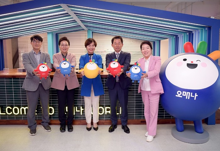 | ▲ 문영훈 광주광역시 행정부시장(오른 쪽부터 2번)이 5일 오후 전일빌딩245 남도관광센터에서 열린 오매나 하우스 개관식에 참석해 포토존과 캐릭터 숍을 관람한 후 관계자들과 기념촬영을 하고 있다. /광주광역시 제공 |