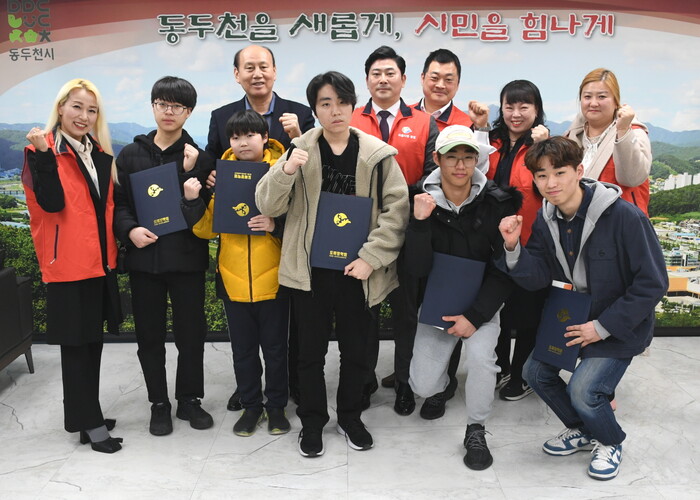 경기 동두천 도비장학회는 지난 13일 시장실에서 학교 밖 청소년 6명에게 장학증서와 장학금을 전달했다. 2012년에 결성된 도비(濤斐, 아름다운 물결)장학회는 동두천의 소상공인, 자영업자들이 기부한 후원금으로 운영되는 장학단체다. 또한 매년 동두천 청소년들에게 장학금 지원 활동을 꾸준히 펼치고 있다. 사진은 박형덕 시장 및 관계자들이 기념촬영을 하고 있는 모습.(사진=동두천시청 제공)