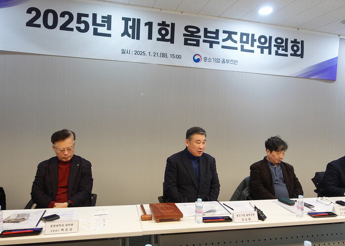 | ▲ 최승재 중소기업 옴부즈만과 민간 위원들이 21일 서울 광화문빌딩에서 개최된 '25년 제1회 중소기업 옴부즈만위원회’에서 안건을 심의하고 있다. < 옴부즈만지원단 제공> |