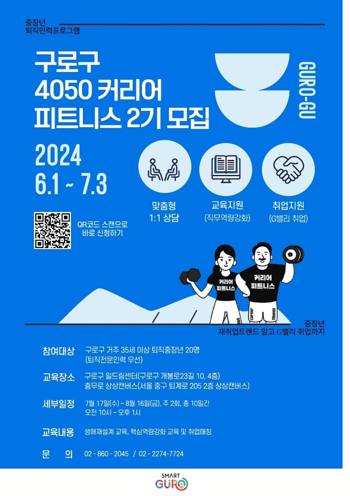 [시민일보 = 이대우 기자] 서울 구로구(구청장 문헌일)가 ‘4050 커리어 피트니스’의 2기 참여자를 모집한다.