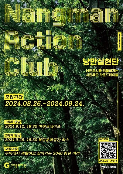 '낭만실현단'은 구미에서 생활하며 발견한 낭만적인 순간들을 공유하여 도시의 낭만을 실현하기 위한 기획으로, 1회차는 9월 12일 마켓브레이즈에서, 2회차는 9월 26일 복합문화공간 하스에서 각각 오후 7시 30분에 진행된다.