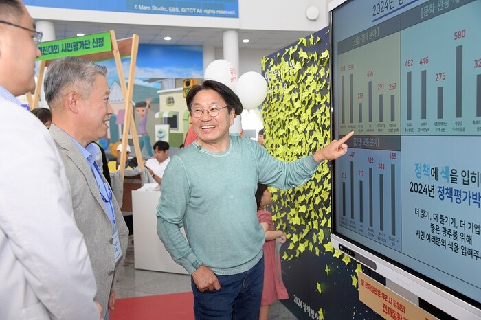 특히 정책평가박람회는 광주시 5개 분야 주요정책 30개를 두고 시민이 선호하는 정책을 평가하는 시민소통프로그램으로, 이날 시민들의 큰 참여를 이끌어냈다.