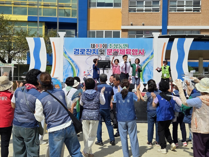 진주시 초장동 봉사단체협의회(회장 이광오)는 20일, 초전초등학교 운동장에서 『제13회 초장동민 경로잔치 및 문화체육행사』를 성황리에 개최하였다.이번 행사는 지역 주민 간 화합과 소통을 도모하고 어르신들에게 감사와 존경의 뜻을 전하고자 마련되었으며, 지역 어르신과 주민 500여 명을 비롯해 조규일 진주시장, 백승흥 진주시의회 의장, 도·시의원, 기관ㆍ단체장 등 주요 내빈이 함께해 자리를 빛냈다.초장동 주민자치위원회(위원장 최진수)에서 진행한 1부 행사에서는 풍물, 하모니카, 댄스스포츠 등 7개 프로그램 수강생들의 멋진 공연을 선보여 관객들의 호응을 이끌며 분위기를 띄웠다. 이날 공연을 통해 수강생들은 그동안의 성과를 지역 주민에게 선보이며 자긍심을 높였고, 주민들은 주민자치프로그램에 대한 이해와 관심을 높일 수 있는 계기가 되었다.