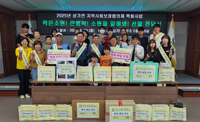 ‘작은소원! 큰행복! 소원을 말해봐!’ 사업은 경제적 어려움으로 소원을 이루지 못하고 사는 관내 저소득 아동을 대상으로 이루고 싶은 생계형 소원(사연)이 적힌 편지(신청서)를 사전에 접수받아 심사 후 희망하는 소원 선물(1인당 최대 35만원 이내)을 지원하는 삼가면 지역사회보장협의체 특화사업이다.