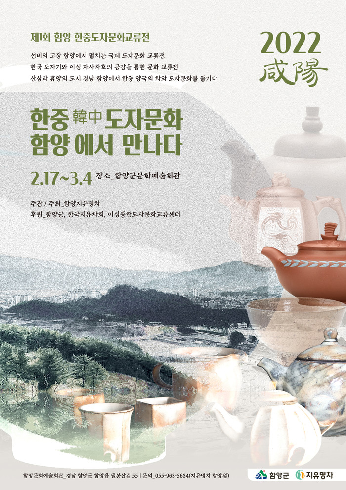 선비와 문인의 고장 함양에서 펼쳐지는 제1회 함양 한중도자문화교류전이 오는 2월 17일(목)부터 3월 4일(금)까지 함양군문화예술회관 전시실에서 열린다.