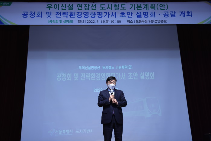 [시민일보 = 박준우 기자] 서울 도봉구(구청장 이동진) 우이신설연장선에 대한 시 도시기반시설본부의 전략환경영향평가 주민설명회 및 기본계획 공청회가 최근 구청 선인봉홀에서 개최됐다.