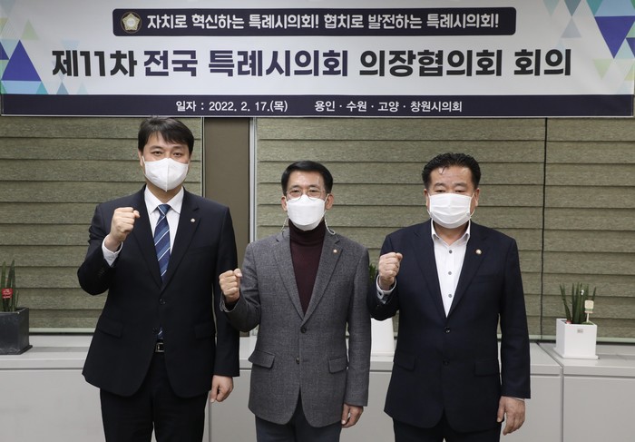 이날 회의에는 조석환 수원시의회 의장, 김기준 용인시의회 의장, 이길용 고양시의회 의장이 참석한 가운데 특례시의회의 실질적 권한 확보를 위한 노력을 지속하기로 했다.