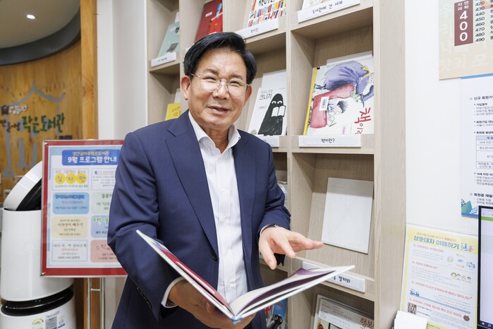 | ▲ 성산 글마루 작은도서관에 방문한 박강수 마포구청장 (사진=마포구청 제공) |