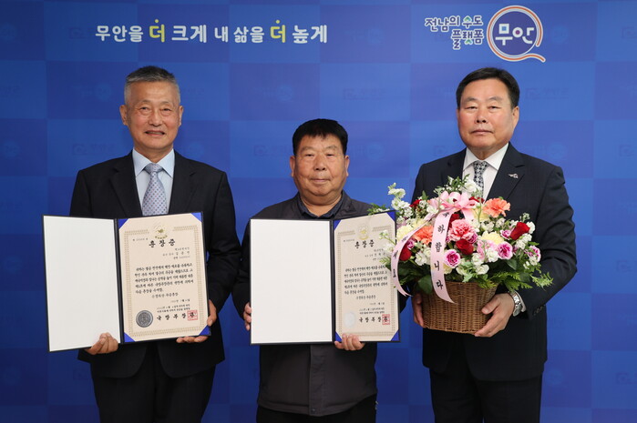 [무안=황승순 기자]전남 무안군은 지난 27일 6·25 전쟁에 참전해 공을 세운 무안읍에 거주 중인 고(故) 김종연 중사의 아들 김해영 씨, 고(故) 정채균 상병의 아들 정건영 씨 등 유족에게 정부를 대신해 화랑무공훈장과 훈장증을 전수했다.