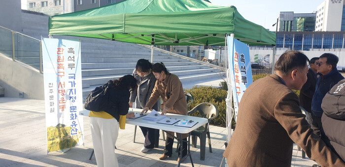 진주문화원은 서명운동 건의문을 통해 “촉석루는 정부 관련기관의 엄격한 감독 하에 한국전쟁으로 소실되기 전의 모습으로 복원되었으며, 정부의 지원과 진주시민의 성금으로 복원된 문화유산으로 1948년 정부수립 이후 최대의 문화유산 복원공사였다”며 “특히, 70년대 시작해서 40여 년간 진행된 진주성 정화사업을 묵묵히 견뎌낸 진주시민들, 개발과 보존의 충돌 속에서도 진주성과 촉석루를 진주 제일의 자랑이요 긍지라고 말하는 시민들의 마음에서 우러나는 진정성은 무한한 가치를 지닌다. 이처럼 촉석루는 이름난 하나의 누각이 아닌 천년이 넘는 역사를 지닌 역사성, 가장 많이 제영된 학술성, 끈질기게 그 모습을 유지하고 있는 진정성과 우리나라 전통건축사에 있어서 자료적 가치까지 모두 갖춘 문화유산이다”고 강조했다.