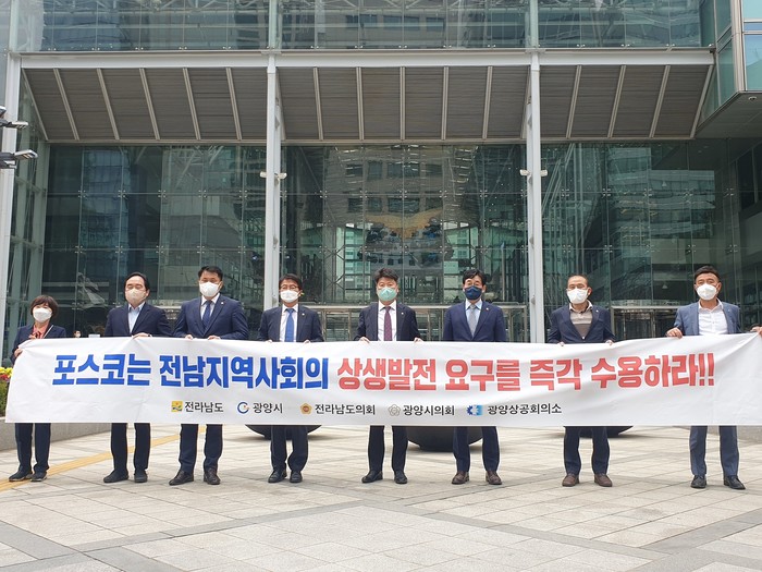앞서 이들 기관은 성명서를 내고 포스코가 지주사의 본사를 서울에서 포항으로 변경 결정을 하면서 광양 등 지역사회를 철저히 무시했다고 지적했다.
