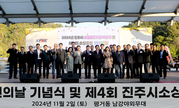 진주시 소상공인연합회는 지난 2일 평거동 야외무대에서 지역 소상공인 및 시민 300여 명이 참석한 가운데 ‘2024년 진주시 소상공인의 날 행사’를 개최했다.