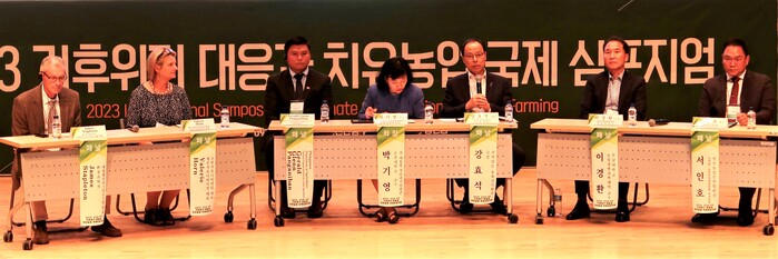 이번 국제학술대회에선 박기영 순천대학교 교수를 좌장으로 강효석 전남도 농축산식품국장, 이경환 전남대학교 교수, 서인호 청년농업인연합회장, 제럴드 글렌 팡가니반 필리핀 농무부 과장 등이 참여해 기후 위기 대응 농업을 주제로 토론했다.