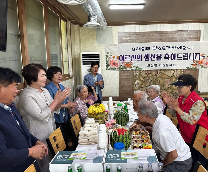 한호상 묘산면장은 “항상 어려운 이웃을 위해 봉사해 주시는 묘산면 자원봉사회장 및 회원들에게 감사드린다.”며 “생신을 맞이한 어르신들에게 큰 위안이 되었으면 좋겠다”고 전했다.