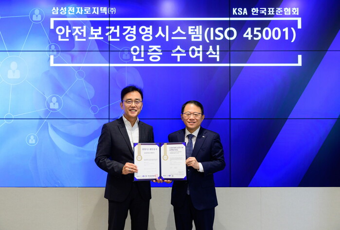 [시민일보 = 여영준 기자] 삼성전자로지텍이 산업통상자원부 산하 한국표준협회가 주관하는 안전보건경영시스템 국제표준 'ISO 45001' 인증을 3일 획득했다.