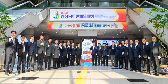 경남 최대의 스포츠 축제인 ‘제64회 경상남도민체육대회’가 100일 앞으로 다가왔다. 개최지인 진주시는 22일 시청 1층 로비에서 D-100일 기념 카운트다운 전광판 제막식을 열고 본격적인 대회 분위기 조성에 나섰다.