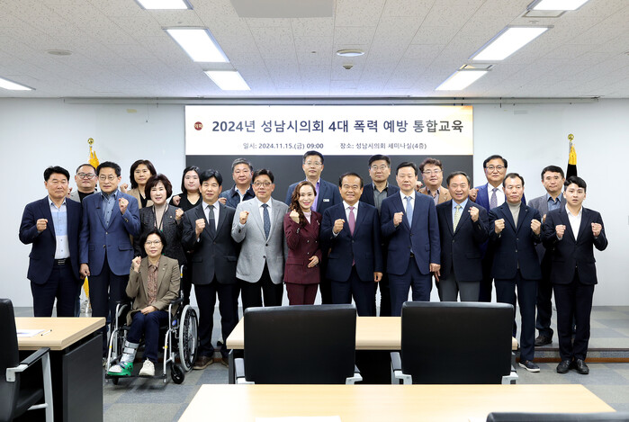 [성남=오왕석 기자] 성남시의회는(의장 이덕수) 15일 시의회 세미나실에서 시의원 및 의회사무국 직원을 대상으로 4대폭력 예방교육을 실시했다.