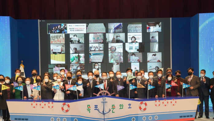 시는 23일 문화예술회관에서 문화도시 선포식을 온오프라인으로 개최하고 ‘새로운 개항 문화항구도시 목포’ 비전을 알렸다.