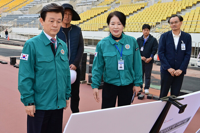 이날 현장 점검에서는 개회식 및 육상, 롤러 종목 등이 펼쳐지는 진주종합경기장과 파크골프 종목이 진행될 송백파크골프장의 전반적인 경기장 상태와 부대시설 등을 중점 점검하였다.