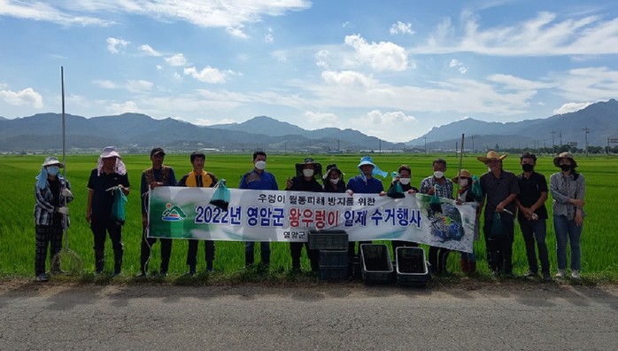 또한, 군은 29일 영암군우렁이생산자연합회, 농업인, 공무원 등과 협력해 왕우렁이가 투입된 농지와 용·배수로 등에서 직접 우렁이 및 우렁이알 약 4톤을 수거했다.