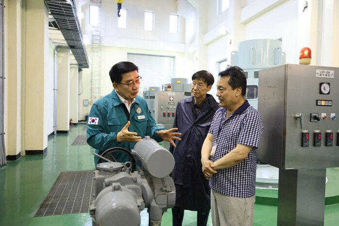 | ▲ 문헌일 구로구청장이 구로1빗물펌프장 현장점검을 실시하고 있다. (사진=구로구청 제공) |