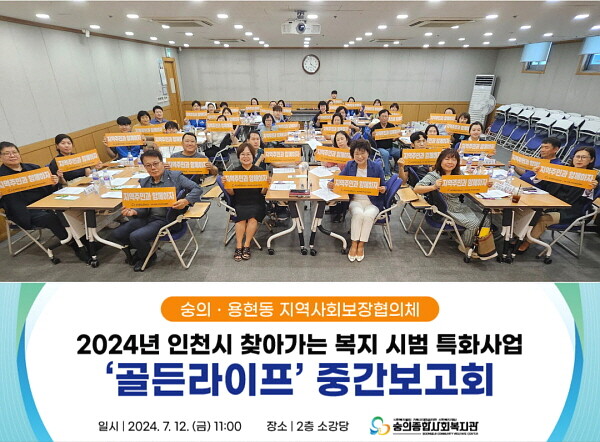 [인천=김형만 기자] 숭의종합사회복지관은 7월 12일 숭의·용현동 지역사회보장협의체 위원 및 행정복지센터 관계자 40명이 참석한 가운데 지난 5월부터 진행 중인 2024년 인천시 복지시범 특화사업 ‘골든라이프’ 중간보고회를 진행했다고 밝혔다.