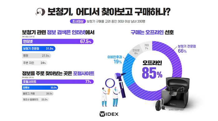 덴마크 프리미엄 보청기, 와이덱스가 오픈서베이에서 보청기 구매를 고려하고 있는 30대 이상 200명을 대상으로 보청기 정보 획득 경로 및 구매 의향을 조사한 결과, 이와 같은 결과를 얻었다고 밝혔다.