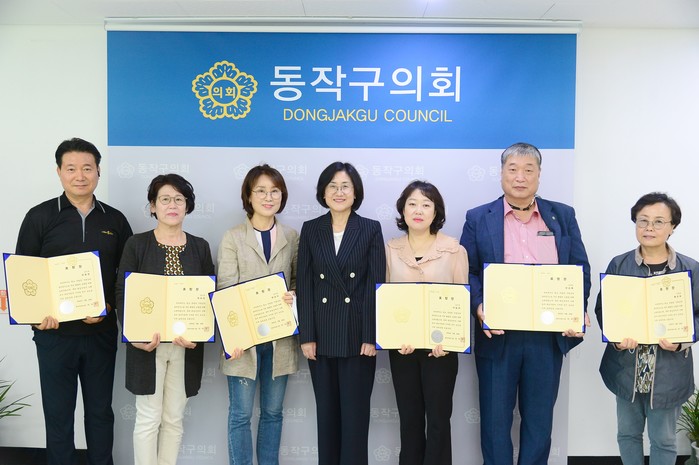 [시민일보 = 여영준 기자] 서울 동작구의회(의장 이미연)가 최근 지역사회 발전을 위해 헌신하고, 타의 모범이 되는 상도3동 자율방재단 등 구민에게 의장 표창장을 수여했다.