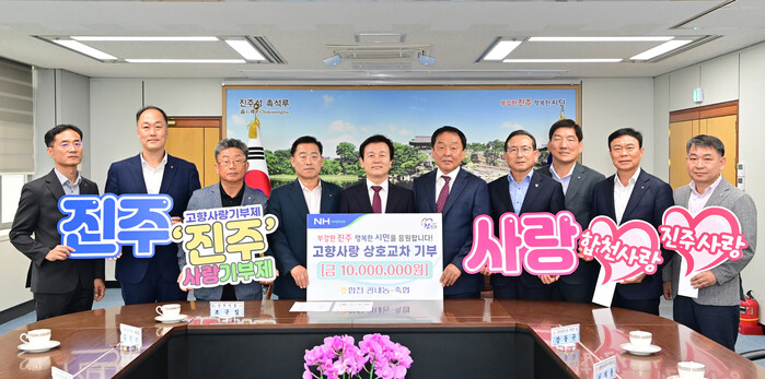 이번 기탁은 진주시 농협(동부농협)과 합천군 농협(새남부·동부·율곡·해인사·합천호농협)의 양 지역 임직원들이 자발적으로 참여해 상호기부를 실천하며, 서로의 지역 발전을 응원하고자 마련됐다.