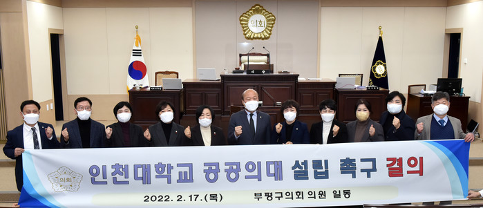 [인천=문찬식 기자] 인천 부평구의회가 최근 제248회 임시회 제2차 본회의에서 전체의원이 공동 발의한 ‘인천대학교 공공의대 설립 촉구 결의안’을 만장일치로 채택했다고 18일 밝혔다.
