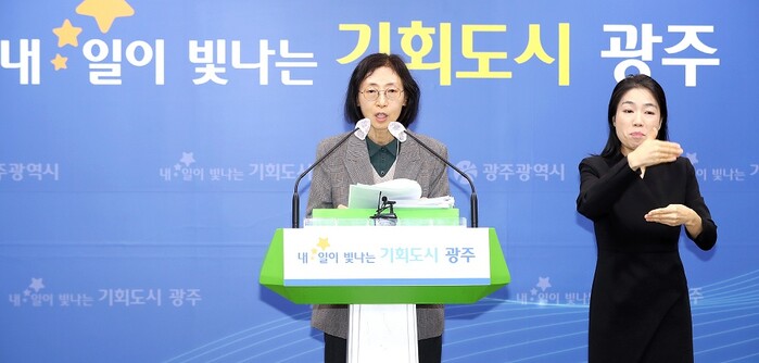 | ▲ 정영화 광주광역시 복지건강국장이 14일 오후 시청 5층 브리핑룸에서 시립요양병원 운영 관련, 광주시 입장문을 발표하고 있다. / 광주광역시 제공 |
