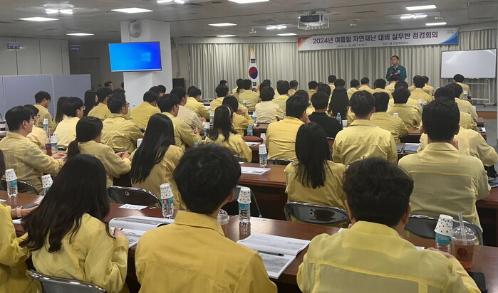 진주시는 지난 30일 시청 민방위대피소에서 조도수 도시건설국장(재난안전상황실장) 주재로 관련부서 및 읍면동 실무자 80명이 참석한 가운데 ‘여름철 자연재난 대비 실무반 점검 회의’를 개최했다.