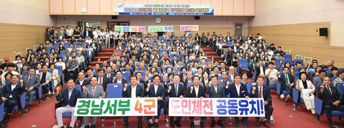 한편 이번 결의대회를 계기로 산청·함양·거창·합천 4개 군은 도민체전 유치에 대한 지역사회 공감대를 대내외에 확산시키고, 긴밀한 협력체계를 구축해 지역 균형발전과 공동 번영을 향한 본격적인 행보에 나서기로 했다.