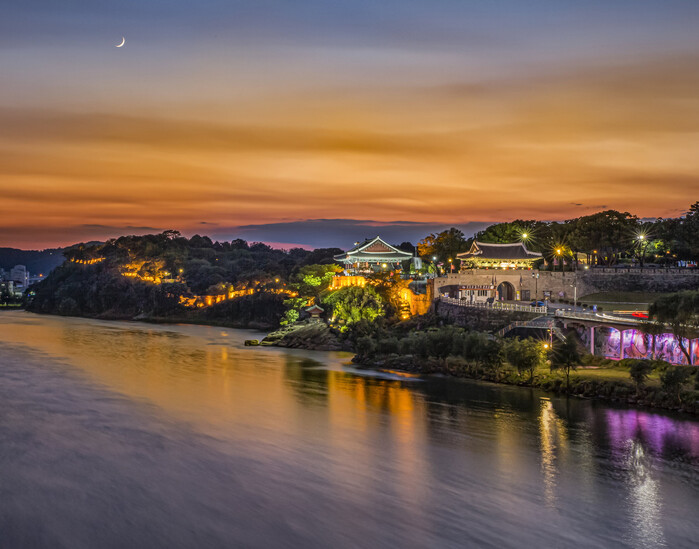 ‘진주여행’의 대표 명소인 진주성은 임진왜란 3대 대첩 중 하나인 진주대첩의 역사를 간직한 곳이다. 고즈넉한 성곽길, 웅장한 누각, 역사가 깃든 문화재 등 다양한 볼거리가 가득하며, 도심을 가로지르는 남강 변에 위치하여 뛰어난 조망경관과 접근성을 자랑한다.