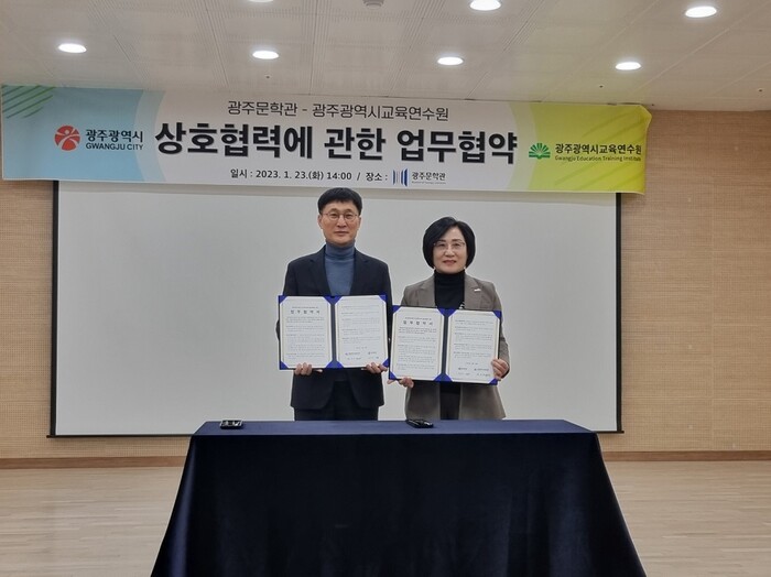 [광주=정찬남 기자] 광주문학관과 광주광역시교육연수원은 23일 문학관 세미나실에서 ‘광주문학 발전 및 문학교육 활성화를 위한 업무협약’을 체결했다.