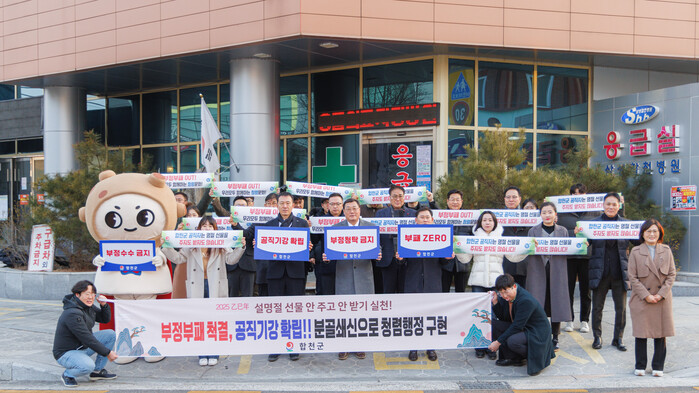이날 캠페인에 동참한 김윤철 군수는 “설 명절을 맞아 공직자의 기본 덕목인 청렴을 되새기며, 금품‧향응 수수 등 부정부패를 척결하고 공직기강을 바로 세우는 데 최선을 다하겠다”며, “투명하고 공정한 행정을 통해 군민에게 신뢰받는 합천군을 만들어가겠다”고 강조했다.