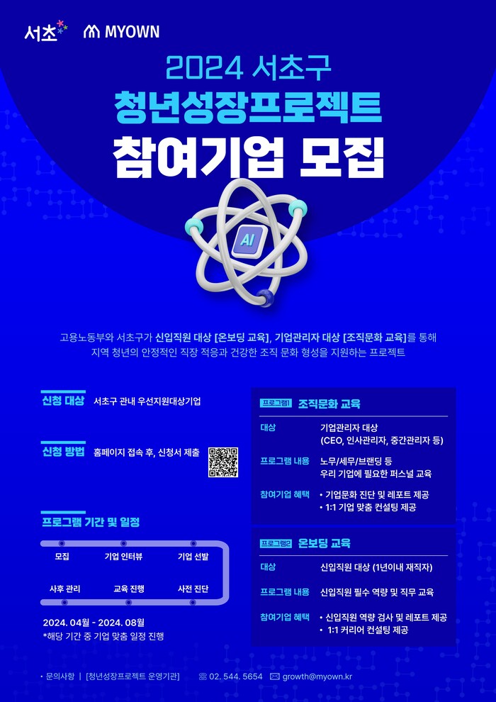 | ▲ 2024 서초구 청년성장프로젝트 참여기업 모집 포스터 (사진=서초구청 제공) |