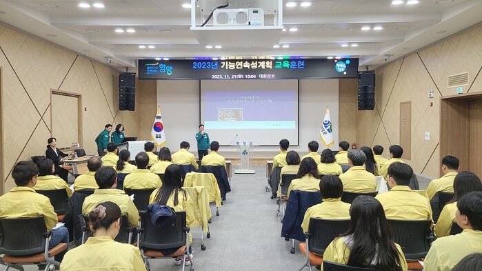 이날 교육은 핵심 기능을 수행하고 있는 50여명의 직원이 참석한 가운데 전문강사의 강의 및 훈련지도로 진행되었으며, 기능연속성계획의 기초부터, 화재, 지진으로 인한 청사 붕괴 상황 등 재난시 비상 대응 절차와 역할 점검, 개선방안 도출까지 폭넓게 진행됐다.