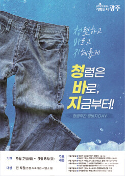 ‘청바지데이’ 운영 첫날인 9월 2일 청바지 입고 출근하기 캠페인을 비롯해 '청바지 착용 인증샷 콘테스트', '공직자 부패행위 모의신고 훈련', '음료와 문화공연을 곁들인 청렴 한 잔 캠페인', '도전! 청렴골든벨', '광주시 청렴홍보왕 선발', '조직문화 개선 특별교육' 등 다양한 프로그램을 통해 직원들의 적극 참여를 유도, 조직 내 청렴문화를 확산시킬 계획이다.