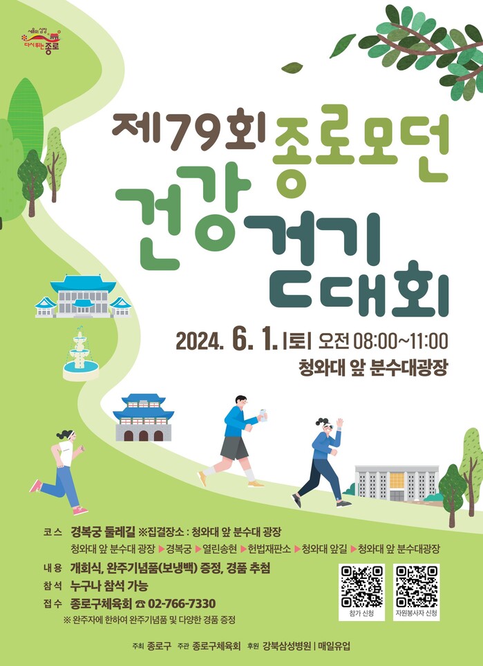 [시민일보 = 이대우 기자] 서울 종로구(구청장 정문헌)가 6월1일 '제79회 종로모던 건강걷기대회'를 개최한다.