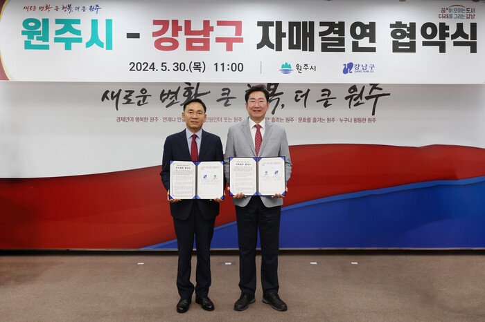[시민일보 = 이대우 기자] 서울 강남구(구청장 조성명)가 강원도 원주시와 30일 원주시청에서 친선결연을 체결했다.