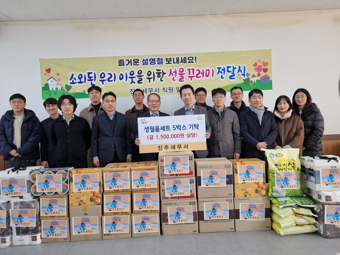 진주 세무서는 설 명절을 앞두고 생필품(라면 외 3종) 5세트(환가액 150만 원 상당)를 전달하며, 도움이 필요한 이웃이 따뜻한 명절을 보낼 수 있도록 나눔을 실천했다.
