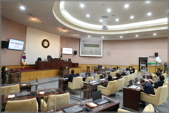| ▲ 최근 구의회 본회의장에서 진행된 '2022년 이해충돌방지법 교육' 모습. (사진제공=성북구의회) |