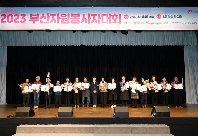 이날 대회는 국가와 부산시 발전에 현저한 공로가 있는 우수 자원봉사자에게 표창장을 수여하는 자리로, 자원봉사활동 유공 국민포장 1점, 대통령표창 2점, 국무총리표창 4점, 행정안전부장관표창 5점, 부산광역시장표창 22점, 부산광역시의회의장 감사장 5점, 부산광역시교육감표창 4점, 자원봉사 명예장(누적 1만시간 이상) 14점 등 총 80점을 수여하여 한 해 동안 헌신적으로 활동한 자원봉사자들의 노고를 격려하고 감사의 마음을 전달하였다.