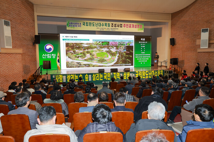 [완도=김현종 기자]완도군은 2월 6일 완도군생활문화센터에서 산림청, 전라남도와 공동 주관으로 지역민을 대상으로 한 ‘국립완도난대수목원 주민 공개 설명회’를 개최했다.