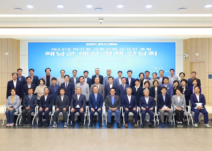 [해남=정찬남 기자] 전남 해남군은 24일 군청 대회의실에서 박지원 국회의원 당선인을 초청, 2024년 예산·정책 간담회를 개최하고, 지역 현안 사업의 성공적 추진을 위한 협조체계를 구축하는데 힘을 모아 나가기로 했다.