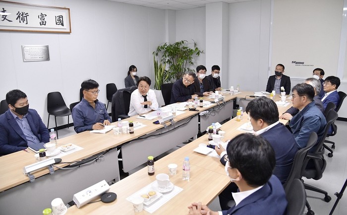 참석자들은 논의에 앞서 김대웅 세방리튬배터리㈜ 대표이사의 안내에 따라 공장 생산라인을 살펴보기도 했다.