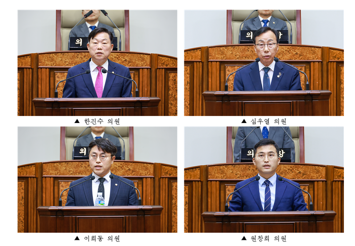 이번 구정질문은 한진수·심우열·이희동·원창희 의원 등 총 4명의 의원이 구정 현안과 문제점에 대해 질문하고, 이에 대한 개선책을 제시하는 형식으로 진행되었다.
